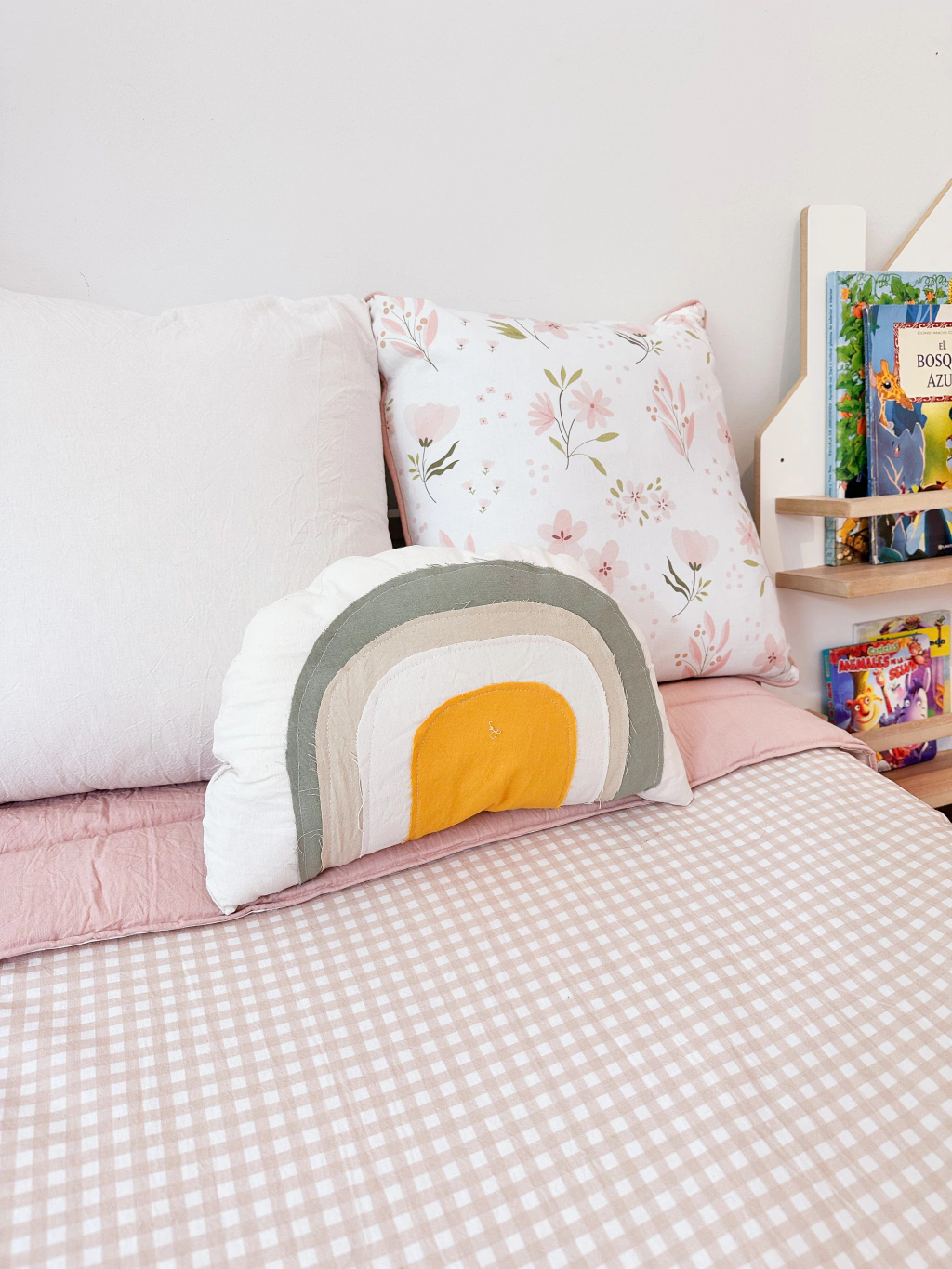 Almohadón tusor con apliques del mismo genero de tela en diferentes tonalidades.