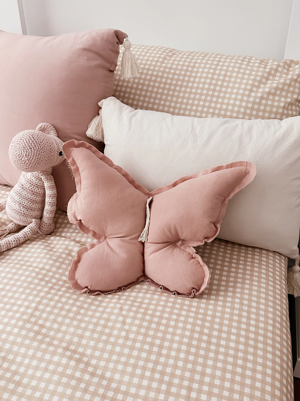 Almohadón en forma de Mariposa en tela tusor, varios colores.