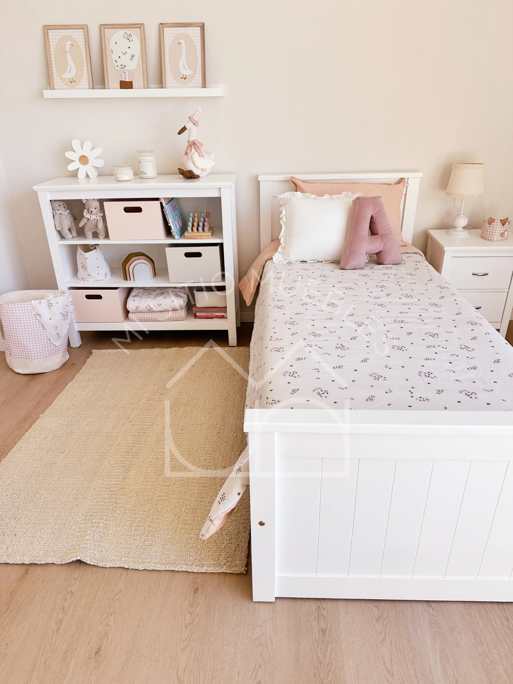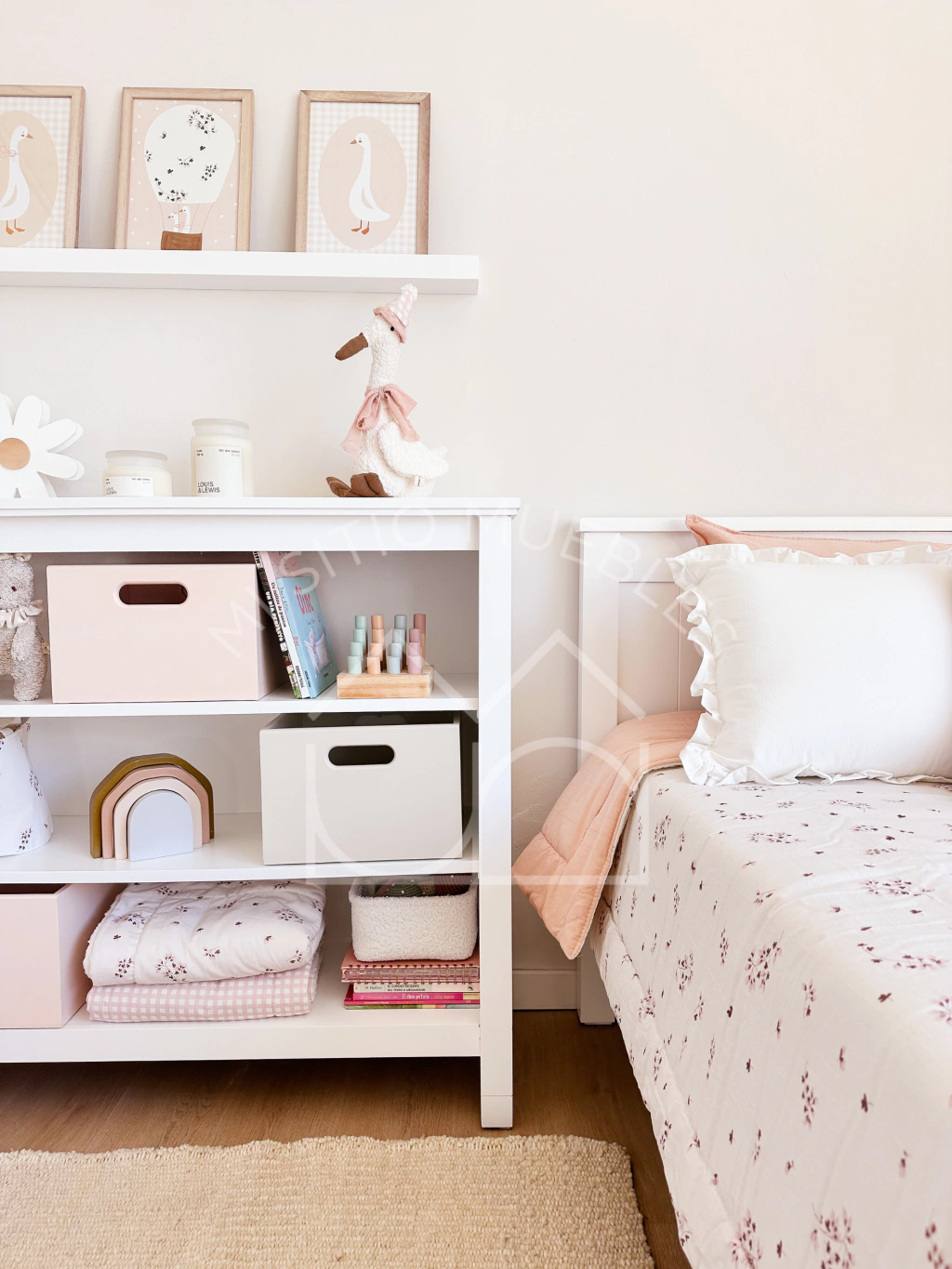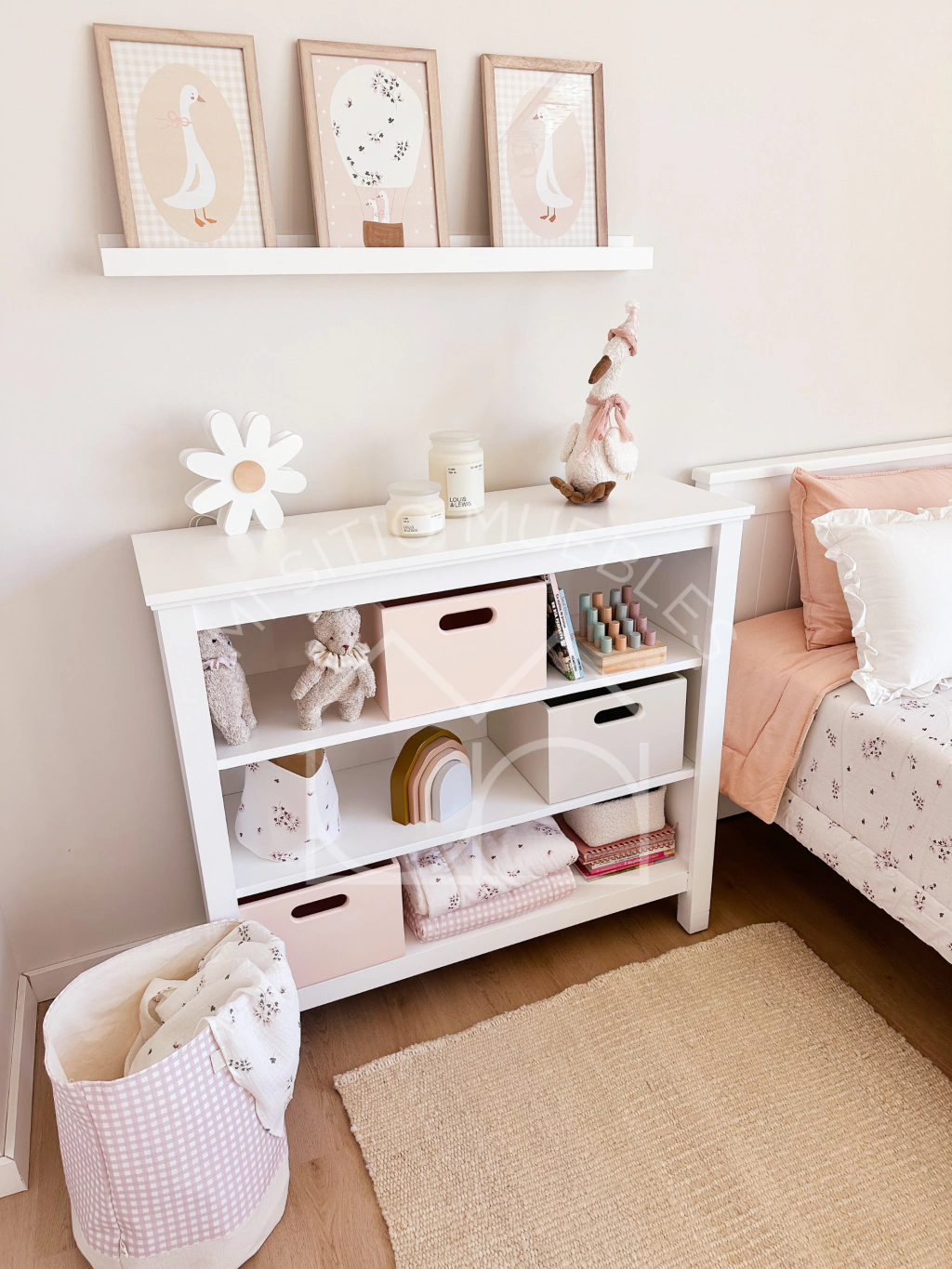 Tiene gran capacidad para libros, pero además es ideal para guardar cajas/bolsas con juguetes a las que los chicos puedan acceder fácilmente. Su diseño acompaña cualquier tipo de decoración.