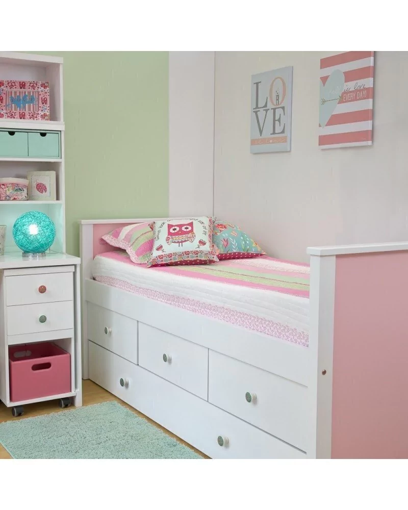Divan Cata con guardado y cama inferior (incluida en el precio), para aprovechar el espacio. Es la preferida de los chicos.