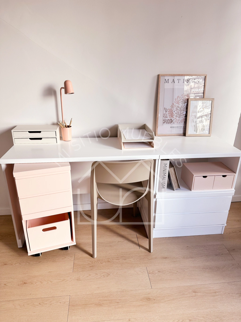 Accesorios opcionales en este caso tiene como accesorio la Cajonera Mar Maxi beige, Cajonera Porta Utiles Mar beige y Porta Hojas A4 Mar blanco y beige que podes encontrarlos en la sección "Accesorios de Escritorio"