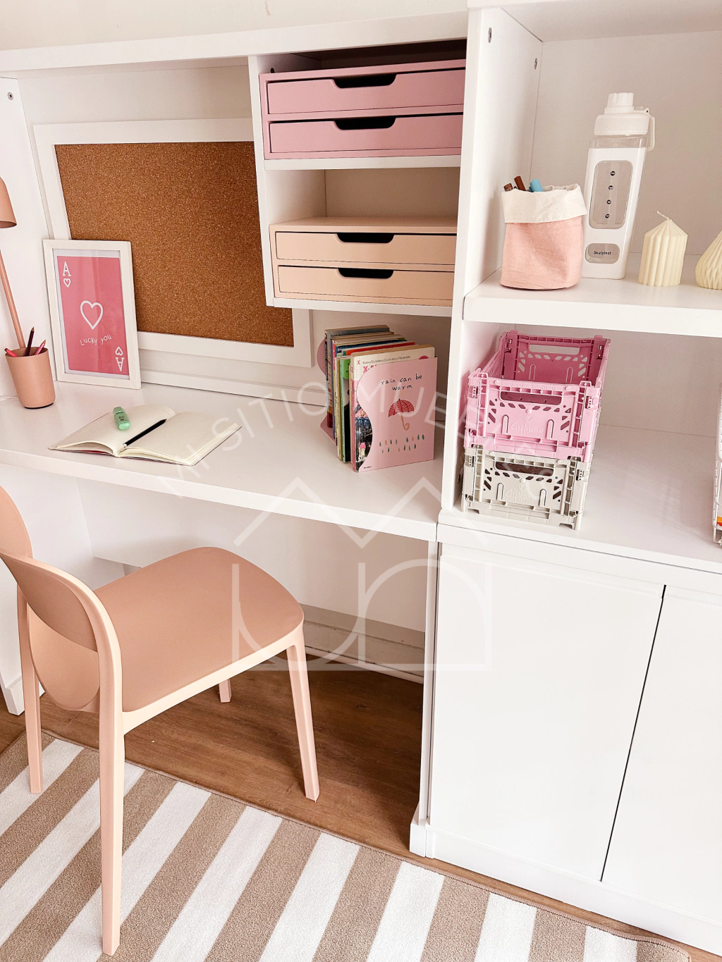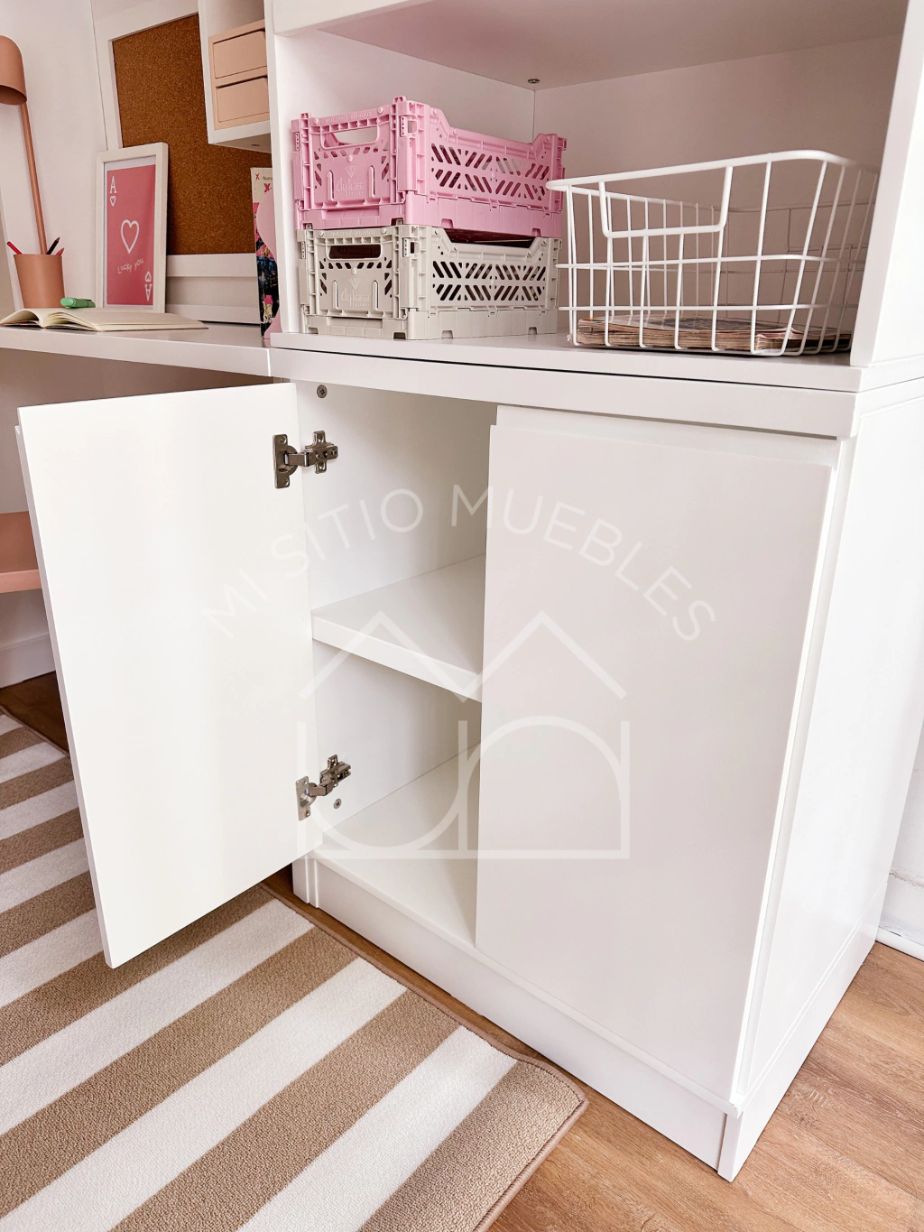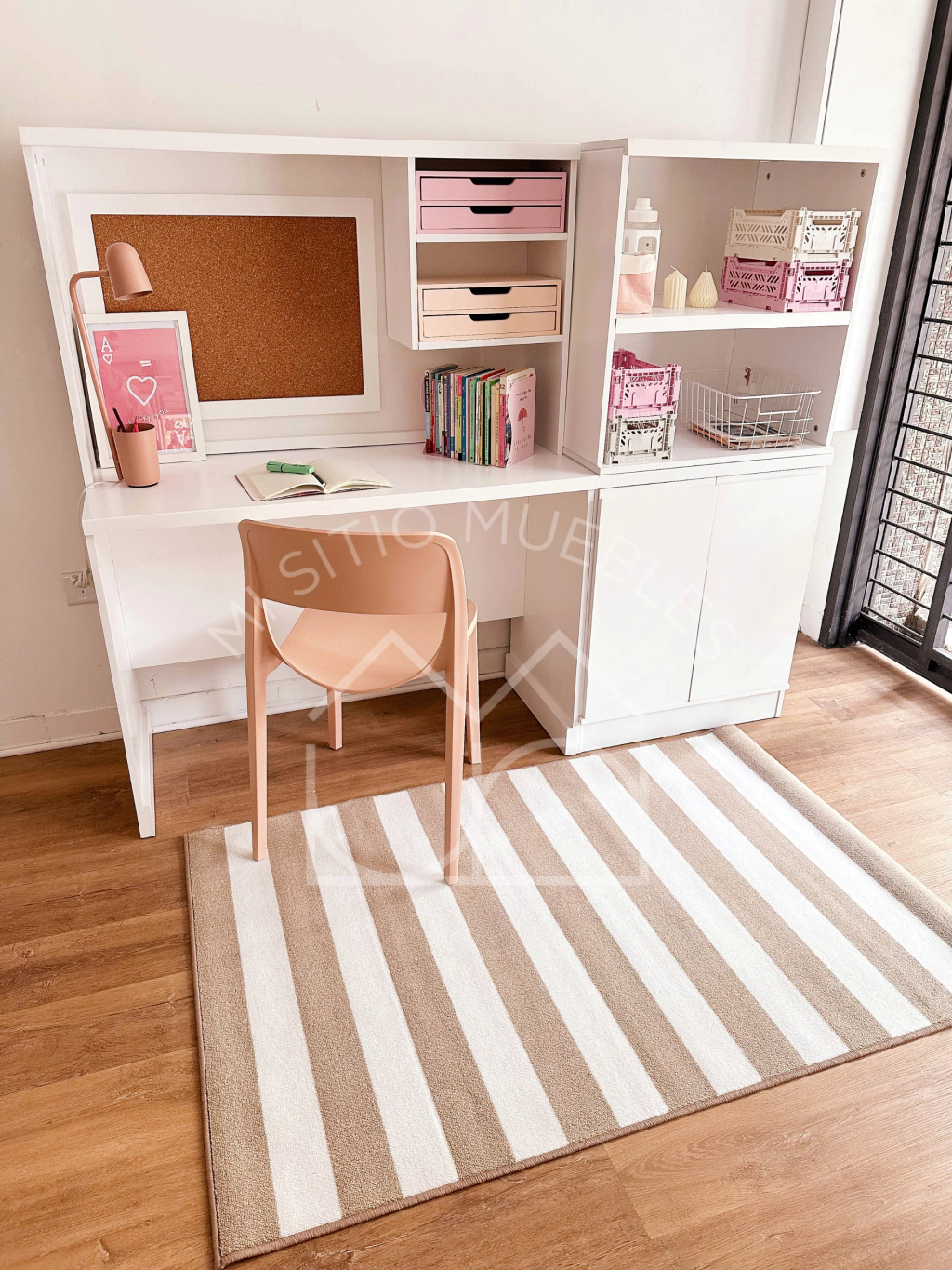 Accesorios opcionales en este caso tiene como accesorio la Cajonera Porta Utiles y Caja Cuadrada Mar que podes encontrarlos en la sección "Accesorios de Escritorio"