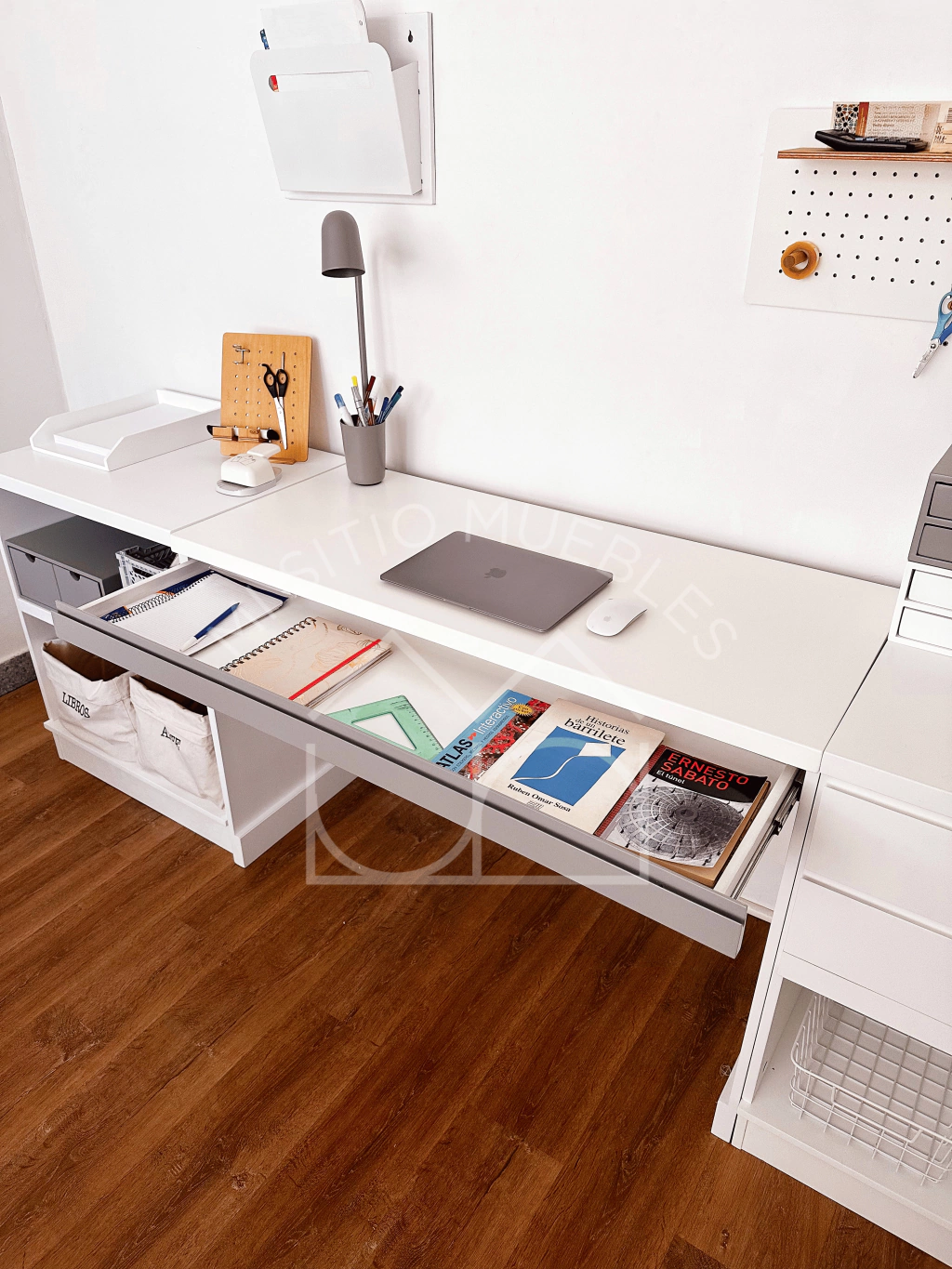El escritorio Recto es la pieza fundamental de nuestra línea modulada ya que es la base de esta pudiendolo combinar con módulos o alzadas de la misma línea creando espacios de estudio y trabajo que se adapten a tus medidas y necesidades!