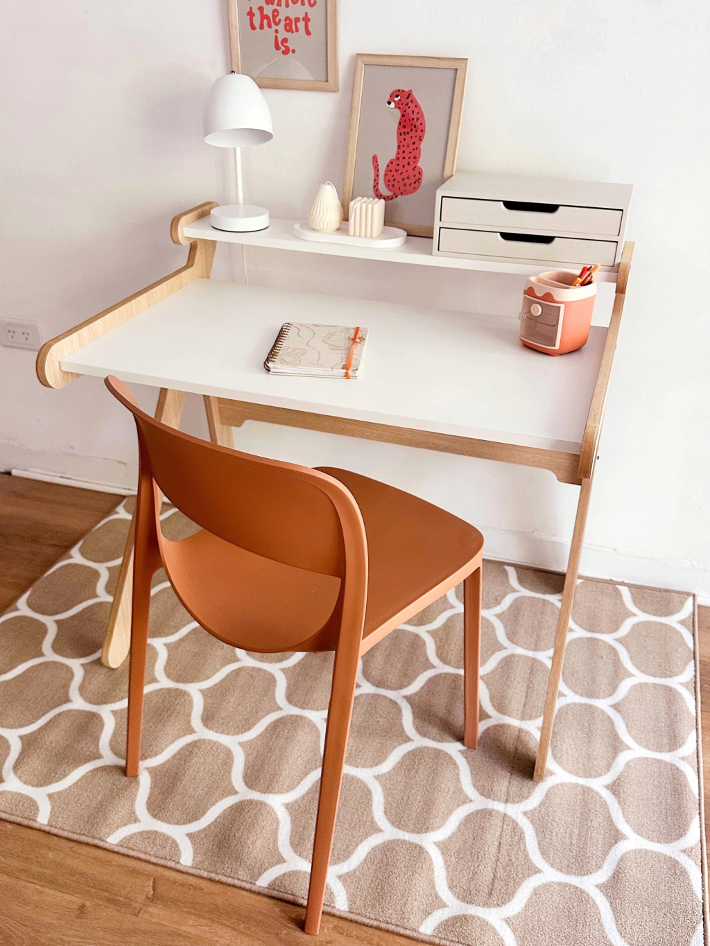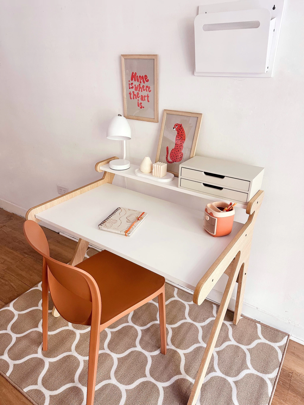El escritorio Net, es elegido por su llamativo y autentico diseño. Tiene un largo bastante reducido, pero cuenta con una alzada y un ancho que le da el espacio suficiente para que sea super comodo para trabajar. Su alzada además, diferencia el lugar de trabajo con el lugar de apoyo de herramientas a utilizar. No incluye accesorios.