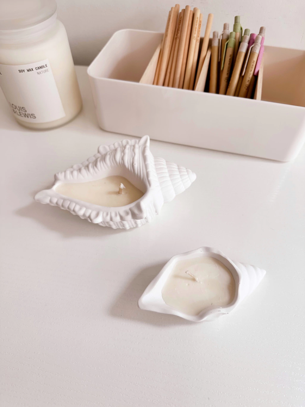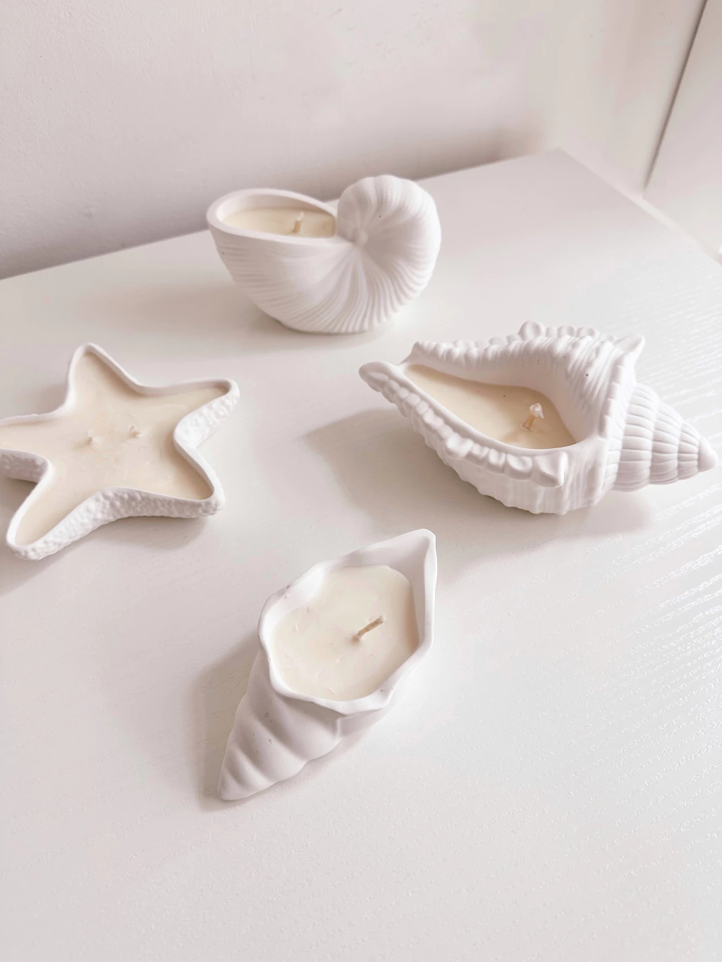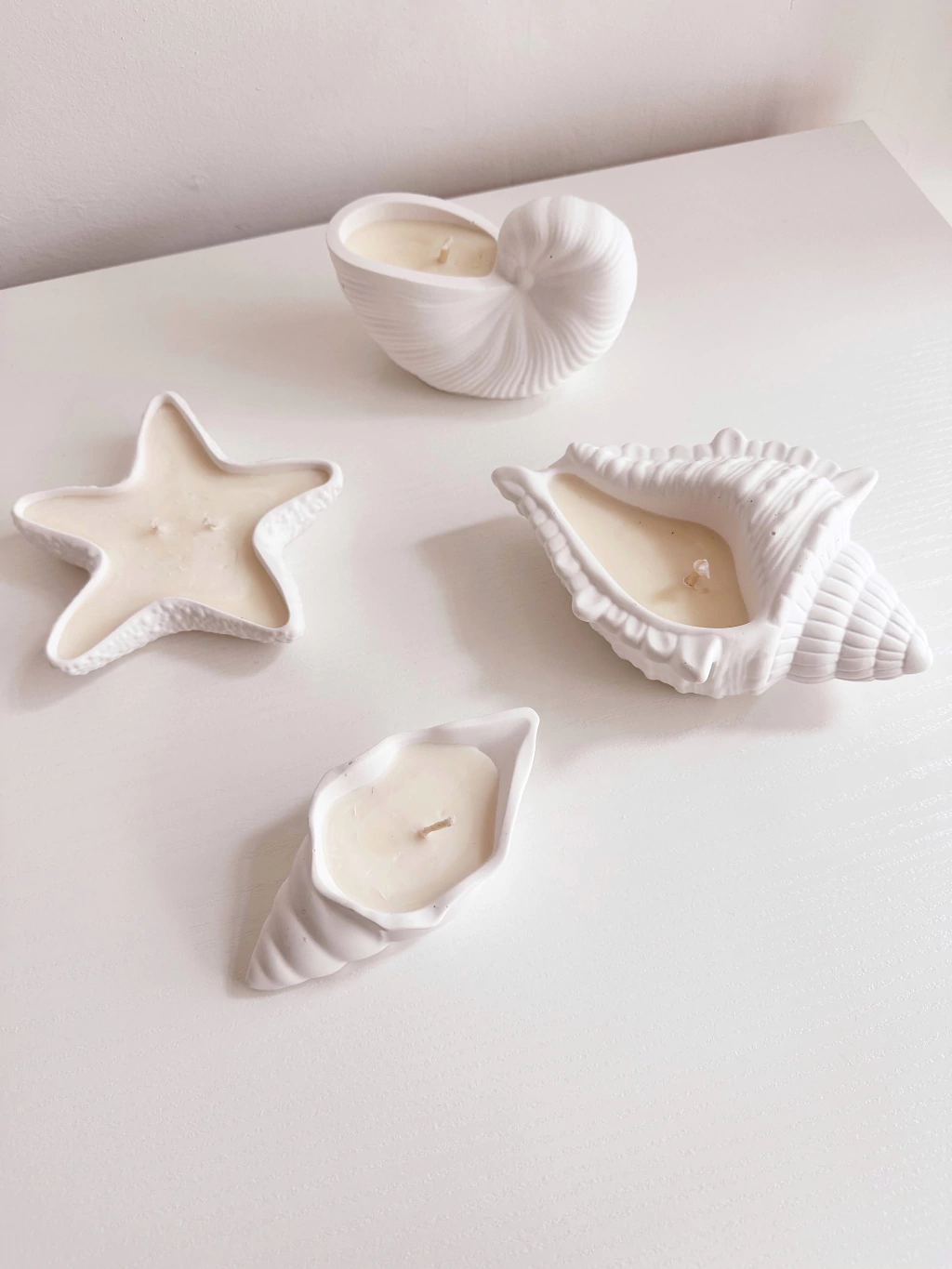 Velas con tematica marina: Caracol, estrella, Caracola.